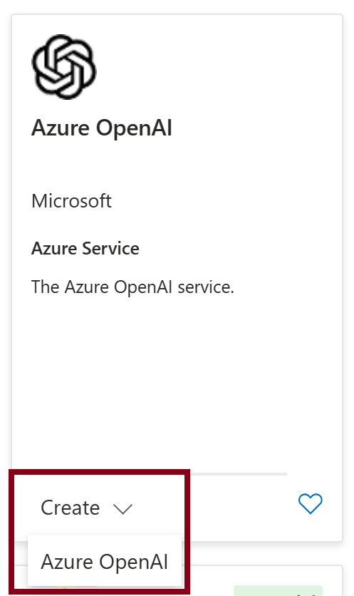 For Azure OpenAI, select Create > Azure OpenAI.