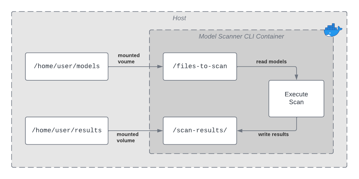 - Model Scanner CLI requires its input - the model(s) to be scanned - to be made available to the running Docker container through a mounted volume.